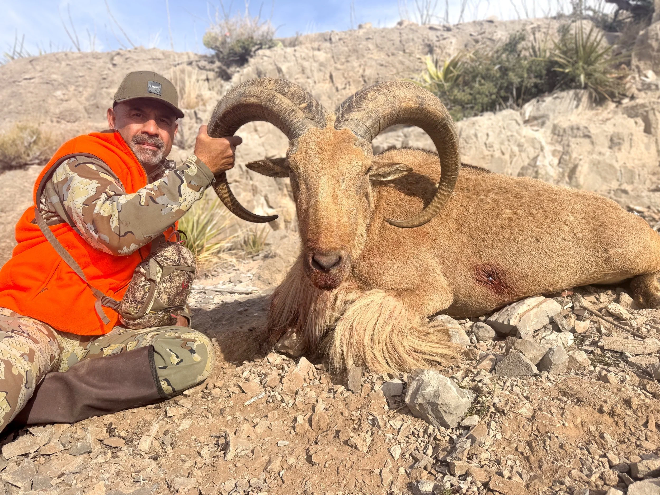 Barbary sheep hunting is yet another hunt that offers the true "mountain hunting" experience. SPGS is proud to hold the current New Mexico state record Barbary sheep (pictured here) as well as 3 other rams in the top 10. Barbary sheep, or Aoudad, have amazing eye sight, and an uncanny ability to vanish. This makes for a fun filled hunt. These hunts are either ran out of a wall tent camp, or hotel in the nearest town.